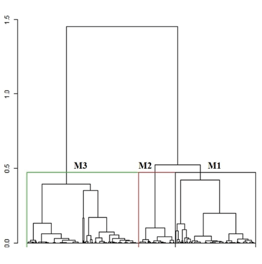 The relationships between fruit morphotypes and biogeographical zones were statistically significant (chi-square = 279.87, df = 4, p-value < 2.2e-16). The MCA captured 60.45% of the information on the first two axes (Figure 7). The Sudanian and Sudano-Guinean zones, along with morphotype 3, were the most represented variables on axis 1, while the Guineo-Congolian zone and morphotypes 1 and 2 were well represented on axis 2. Morphotype 1 was most frequent in the Sudanian zone, whereas morphotype 2 was primarily found in the Guineo-Congolian zone, and morphotype 3 is dominant in the Sudano-Guinean zone.