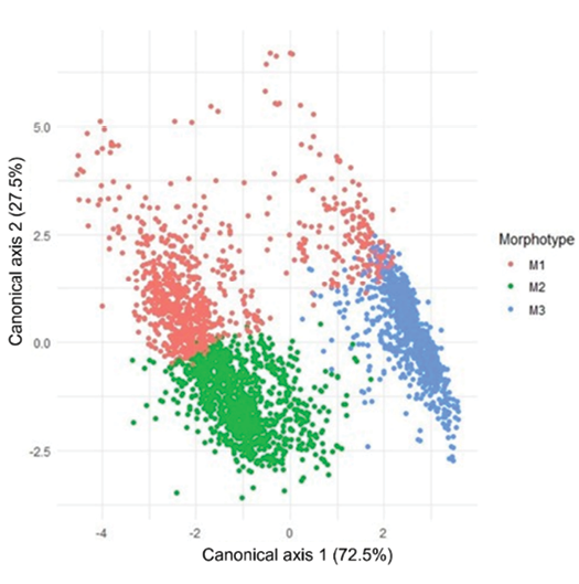 The identification and classification of fruit morphotypes are essential steps in understanding plant diversity and adaptation across different biogeographical zones. The analysis of P. kotschyi fruit morphological traits allowed the distinction of three morphotypes, each associated with specific climatic conditions. Hierarchical classification revealed three distinct types based on morphological traits. These morphotypes differed in characteristics such as fruit length, seed number and seed weight, which are essential for plant reproduction and survival. Discriminate analysis confirmed the distinctive nature of these morphotypes, highlighting the role of morphological traits in ecological and evolutionary processes. This classification aligned with findings from other studies on fruit and seed morphometry, which highlighted the importance of these traits in plant adaptation and evolutionary processes (Adjacou et al, 2024; Houndonougbo et al, 2020).