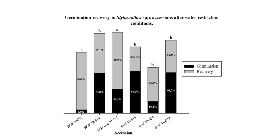 In this context, understanding the germinative behaviour of genotypes subjected to water-limited conditions is essential for selecting materials suitable for cultivation in arid environments. Therefore, this study aimed to evaluate and compare the germinability of seeds from Stylosanthes spp. accessions held in BGF-UEFS under water stress during germination.