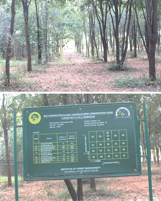 Keywords: Red sanders, heartwood formation, germplasm evaluation, tree improvement, field genebank
