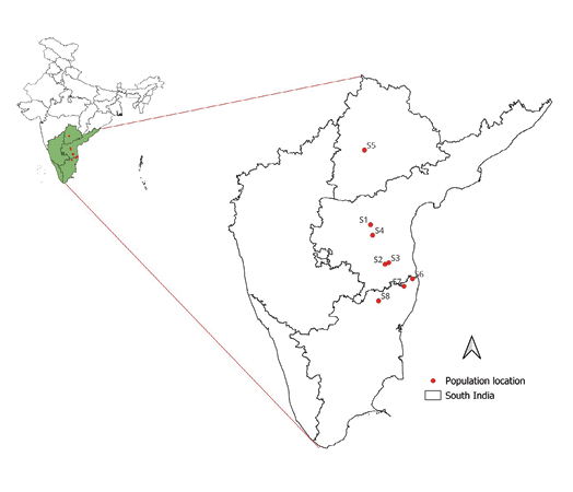 Table 1. Geographic details of seed sources and corresponding number of plants established in the red sanders field genebank at ICFRE-Institute of Forest Biodiversity, Hyderabad, India. Longitude and latitude are expressed in decimal degrees.